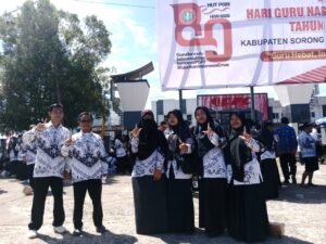 Wakil Bupati Kabupaten Sorong, H. Sutejo, S.Pd, bertindak sebagai pembina upacara. Dalam amanatnya, ia menegaskan bahwa peringatan Hari Guru tidak boleh hanya menjadi agenda seremonial semata, melainkan harus menjadi sarana memperkuat komitmen para pendidik dalam membangun sumber daya manusia yang unggul.
